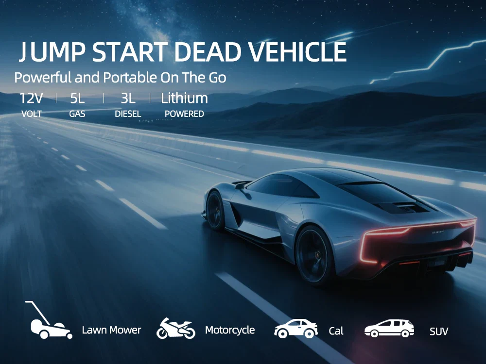 【5-in-1】 Portable Car Starter and Air Compressor 4000A Maximum Power (8.5 liters of gasoline, 8 liters of diesel) Equipped with 150-pound tire inflator